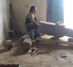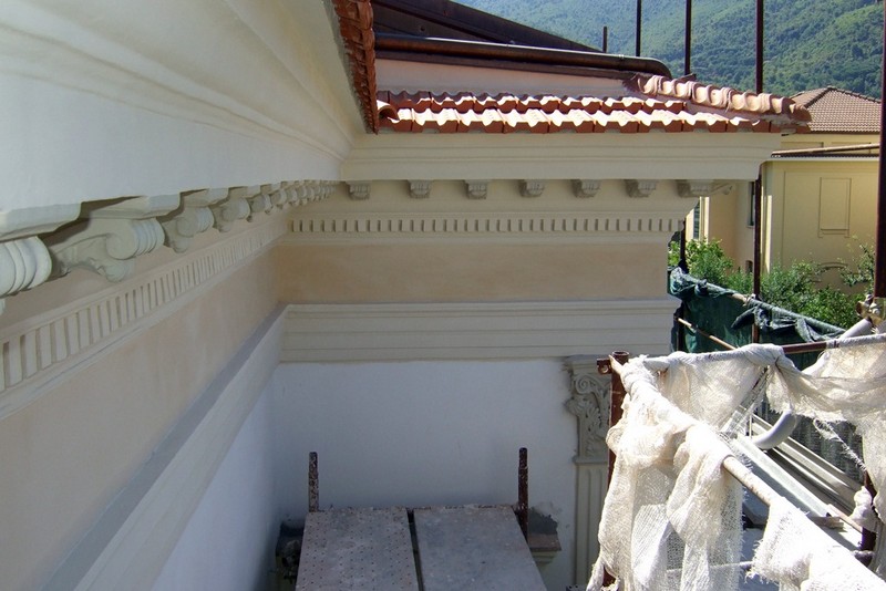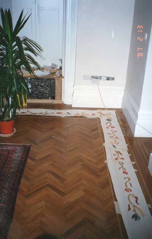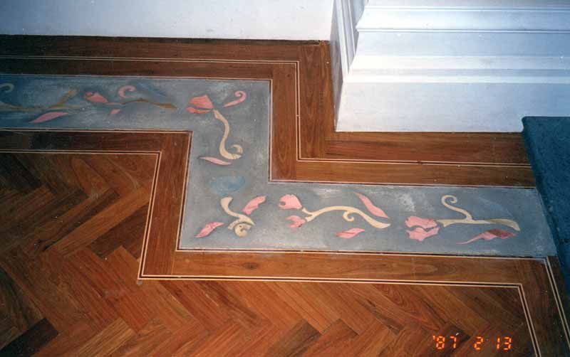 Decorazione pavimento pietra, ottone, rame e cemento, Casa Coppola-Wong, Londra |